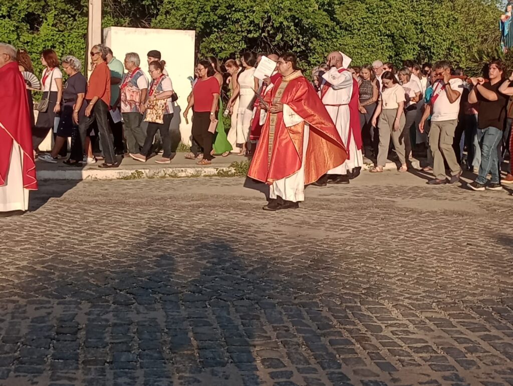 Logo após a liturgia, os paroquianos participaram da tradicional procissão do Senhor Morto. O cortejo seguiu em clima de recolhimento e devoção até a Capela de São Sebastião, localizada no Serrote da Cruz, na Ilha de Sant’Ana. A caminhada reuniu um grande número de fiéis, que acompanharam a imagem em um gesto de fé, respeito e contemplação.